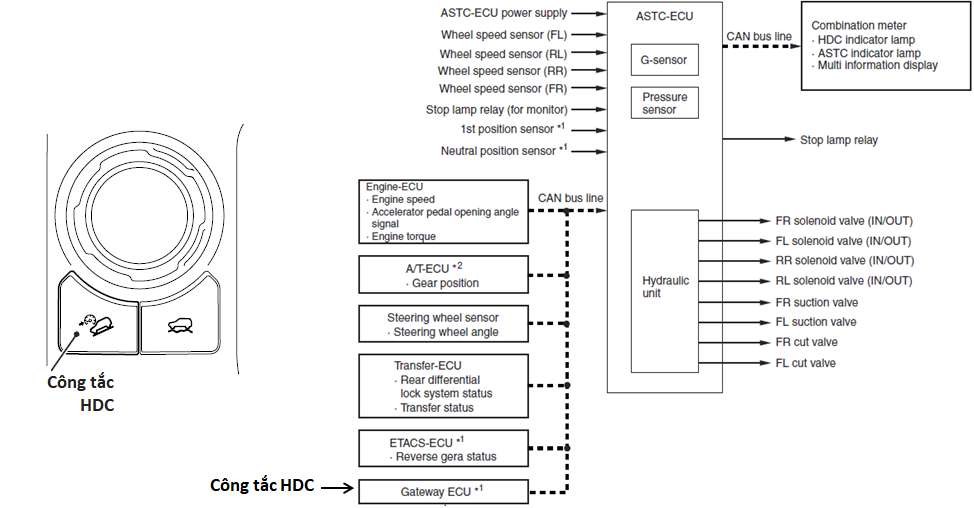 ASTC-ECU sẽ không nhận bất cứ tín hiệu nào từ công tắc HDC khi bạn nhấn và giữ nó trong vòng 15 giây để tránh các hoạt động ngoài ý muốn.