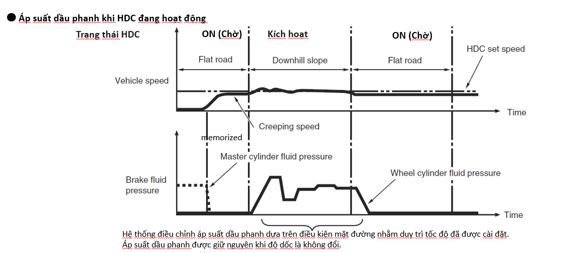 · HDC được kích hoạt với bàn đạp ga và phanh được thả ra hoàn toàn.