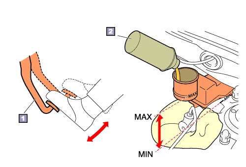 (2) Đổ dầu phanh mới vào bình chứa xylanh phanh chính đến mức MAX.