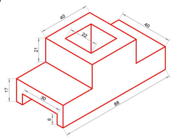 Cho hình chiếu trục đo (hình chiếu nổi) của vật thể.