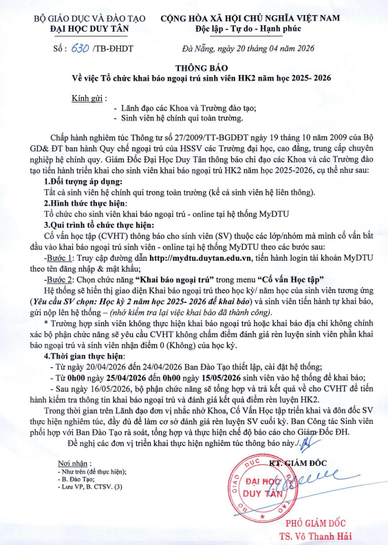 Thông báo về việc Tổ chức khai báo ngoại trú sinh viên HK2 năm học 2025-2026