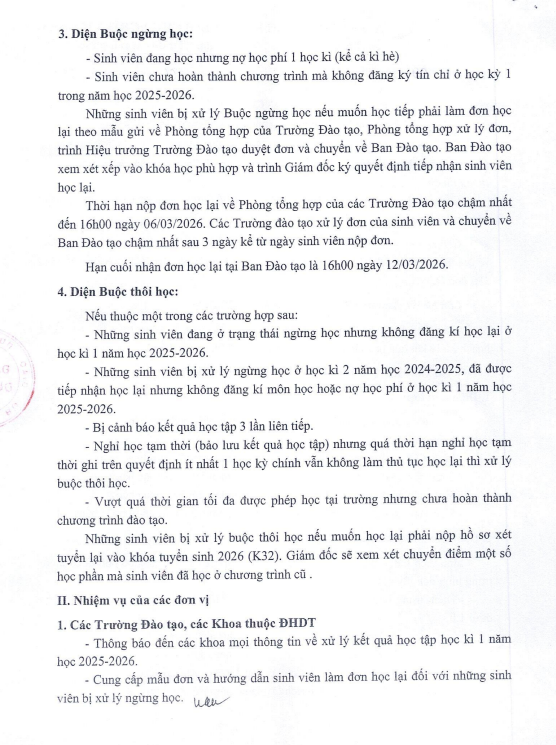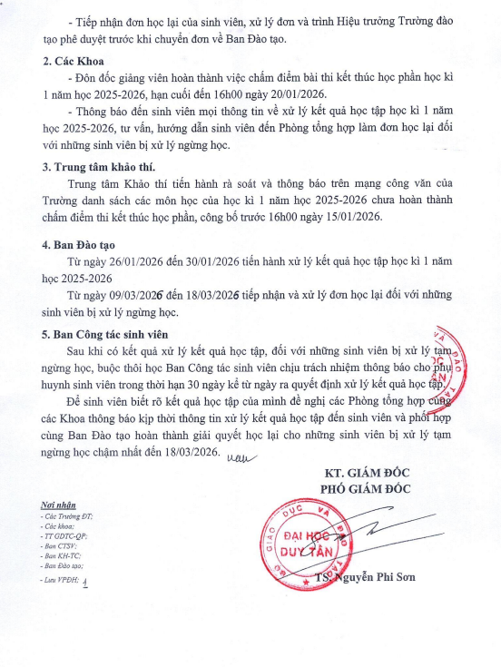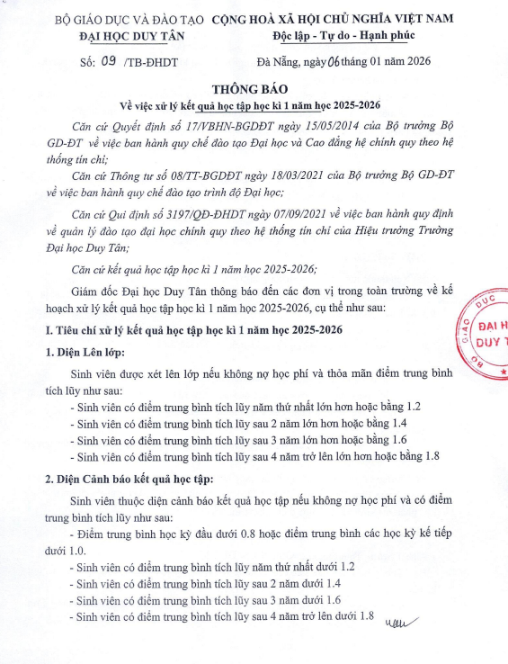 Thông báo về việc xử lý kết quả học tập học kì 1 năm học 2025-2026