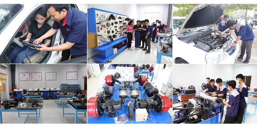 Các thiết bị đào tạo như Động cơ hay Hộp số của các hãng Toyota, Hyundai có xuất sứ từ Hàn Quốc, Nhật Bản cùng các dụng cụ đồ nghề khác được Trường nhập khẩu từ hãng Beta của Italy hay các thiết bị đo kiểm cơ khí chính xác của Đức,… tạo điều kiện tối đa cho sinh viên ngành Công nghệ Kỹ thuật Ôtô trong các hoạt động thực hành thực tế.