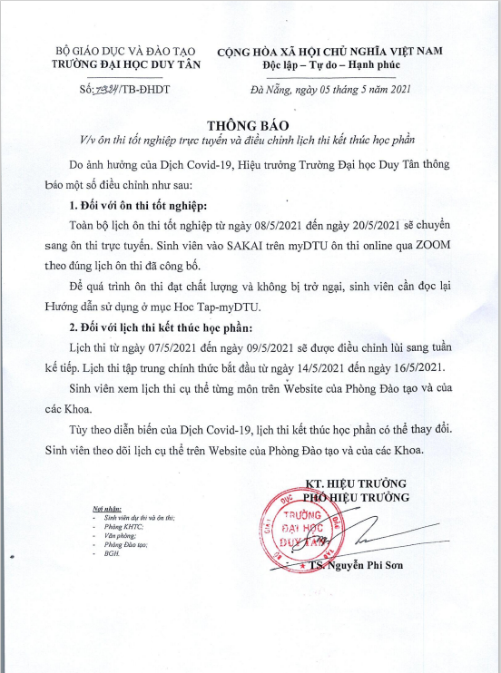 Thông báo về việc ôn thi tốt nghiệp trực tuyến và điều chỉnh lịch thi kết thúc học phần