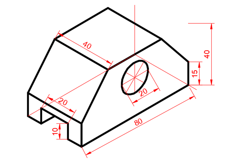 Cho hình chiếu trục đo (hình chiếu nổi) của vật thể.