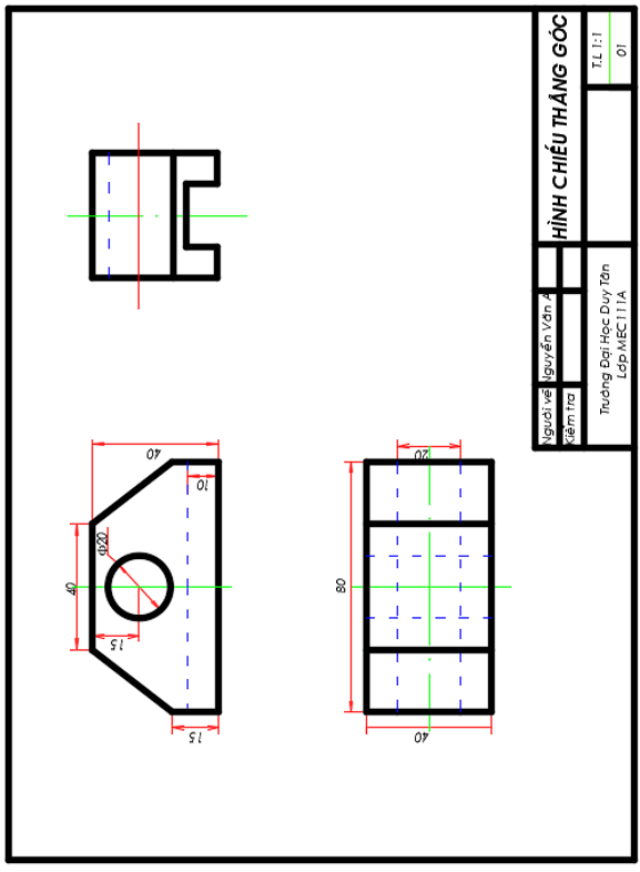 1. Hướng nhìn từ trước: Ta có hình chiếu đứng
