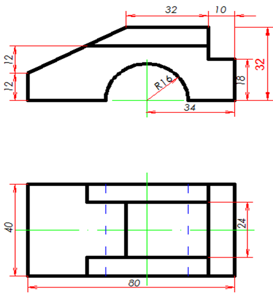 Vẽ hình chiếu cạnh từ hai hình chiếu thẳng góc.