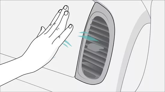 Cảm nhận không khí thổi ra từ khe gió. Bạn cần phân biệt nhiệt độ không khí là lạnh, bằng nhiệt độ phòng hay nóng hơn không khí xung quanh. Đồng thời để ý trường hợp không khí mới thổi ra thì lạnh nhưng sau đó ấm hơn, hoặc ấm liên tục nhưng thỉnh thoảng lại lạnh.