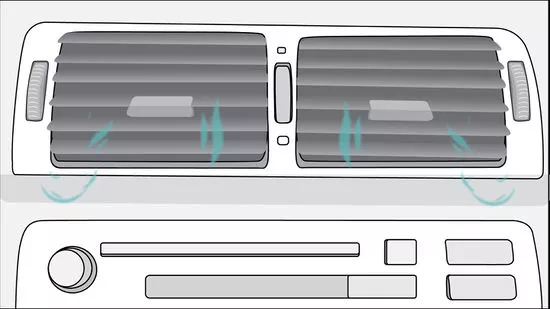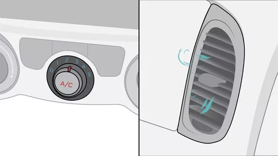 Mở máy điều hòa khi xe đang chạy. Máy điều hòa sẽ không hoạt động bình thường trừ khi động cơ đang chạy. Để xác định chính xác nguyên nhân, bạn phải mở máy điều hòa và đặt chế độ “fresh air” (không khí tươi chứ không phải tuần hoàn), khi đó không khí sẽ thổi ra từ các khe chính giữa.