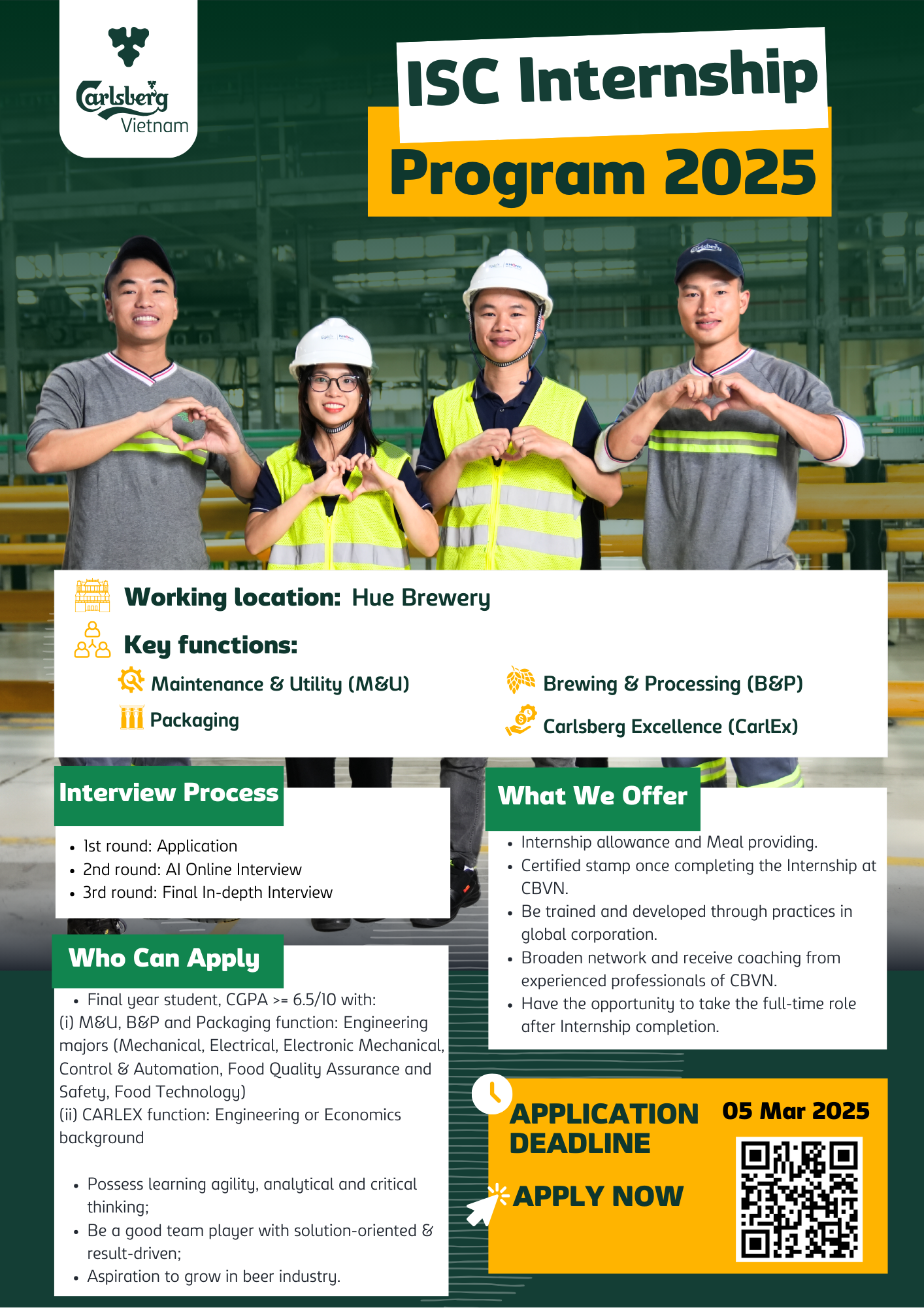 Explore key functions here: https://carlsbergvietnam.vn/vi/newsroom/chuong-trinh-thuc-tap-sinh-khoi-nha-may-2025-isc-internship-program-2025/