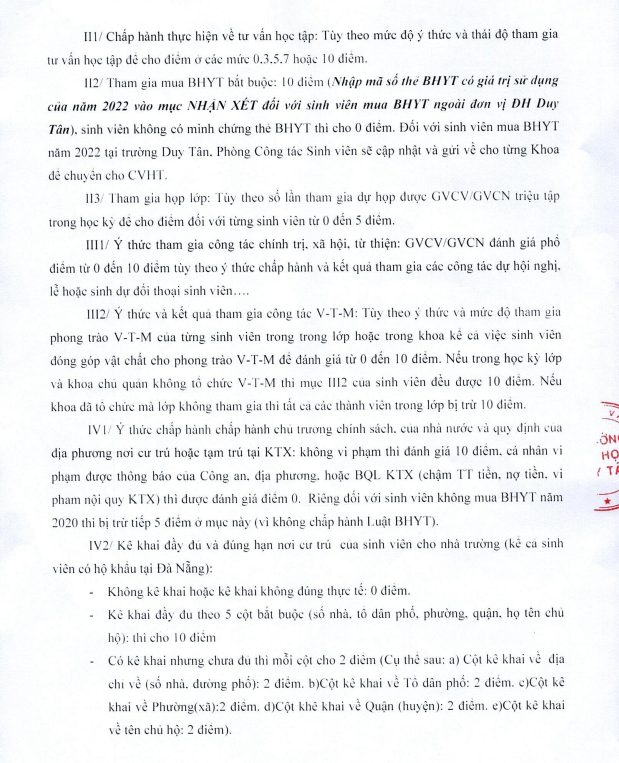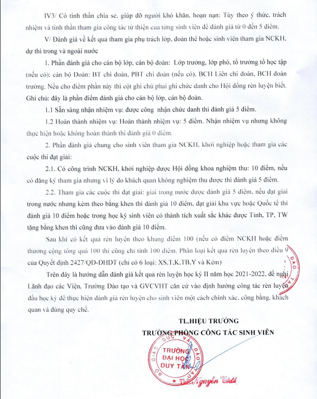 Thông báo về việc đánh giá rèn luyện học kỳ 2 năm học 2021-2022