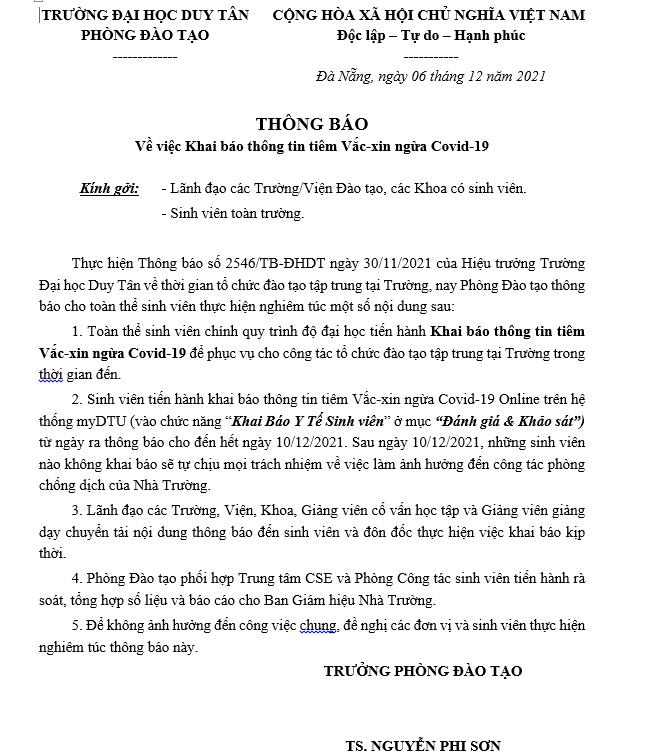 Thông báo về việc Khai báo thông tin tiêm Vắc-xin ngừa Covid-19