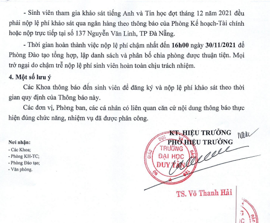 Thông báo về việc khảo sát Anh văn, Tin học đợt 12/2021 (khảo sát Online)