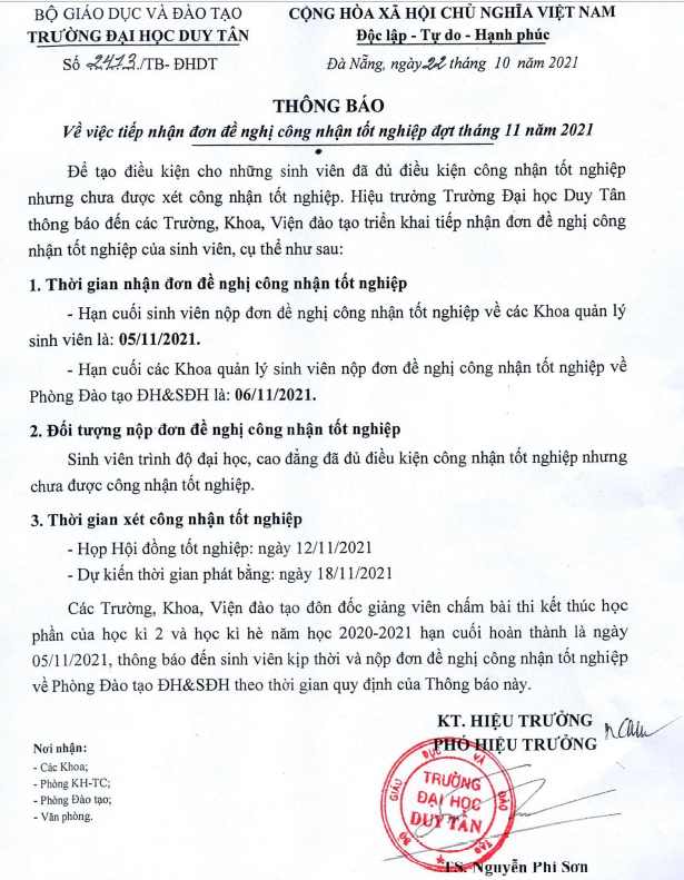 Sinh viên nộp về Khoa trước thời hạn cuối được qui định ở trong thông báo này.